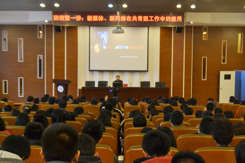 开学典礼结束后,第五期团校第一讲正式开始,本次讲座邀请了天津市团校、天津青年职业p站 孙为民教授主讲。孙教授用幽默的语言,围绕“新媒体、新技术在共青团员工作中的应用”这一主题,通过典型实例论述新媒体时代的特色,讲座过程中穿插的视频展示以及与学员的互动,让大家充分认识到新网络的发展。同时,孙教授针对新媒体、新技术对当前共青团工作带来的机遇和挑战进行分析,提出当前共青团工作要转变思维方式、占领网络阵地、引领网络舆论、营造网络文化、掌握网络技术几点策略。讲座在一片热烈的掌声结束!