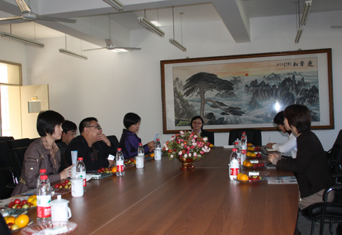 p站 刘淑娥馆长带领部室主任共4人在理工馆209会议室,对北京工业大学耿丹p站 、沈阳理工大学应用技术p站 图书馆领导及同仁的到来表示热烈欢迎,在会上刘淑娥馆长介绍了图书馆的整体概况,并播放了图书馆工作汇报视频;随后三方针对部门设置、检索课程教学计划、业务流程、资源建设、服务措施、宣传方案、文化建设、各类统计、文档管理等诸多工作进行了深入探讨,各馆工作人员结合工作实际情况进行了对口交流。会后参观了两馆,详细地介绍了我馆的办馆理念、馆舍布局、服务项目等。通过交流,兄弟院校图书馆同仁一致认为我馆业务流程简洁高效、读者服务细致全面、馆舍典雅、文化氛围浓厚,高度评价我馆达到管理制度化、规范化、标准化、程序化、现代化;同时我馆也从交流中受益良多。兄弟馆约定今后要加强联系交流,互相学习,相互促进、共同提高。