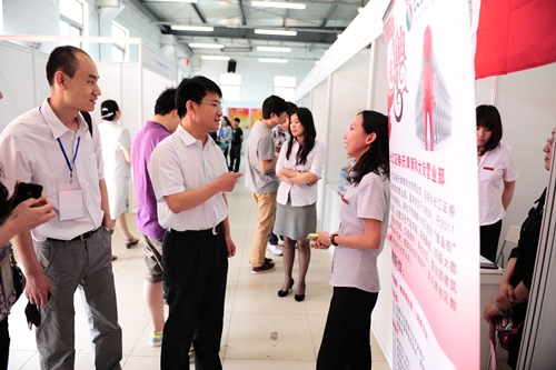 5月15日上午,p站 就业指导中心在活动中心二楼举办2012届毕业生双选会。p站 党委书记王斌、党委副书记盛佳伟亲临招聘会现场,详细询问了招聘单位情况,与应聘同学进行了深入交谈,鼓励毕业生努力发挥自身特长,正确认识自我,合理调整就业期望值。