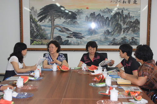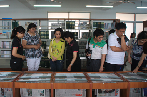 馆长刘淑娥带领各部室主任共四人,对南开大学滨海p站 图书馆领导及同仁的到来表示热烈欢迎,并带领他们参观了两馆,详细地介绍了我馆的基本情况、办馆理念、馆舍布局、服务项目等。随后,在理工馆会议室进行了交流,双方针对部门设置、业务流程、资源建设、服务措施、宣传方案、文化建设、支部活动等诸多工作进行了深入探讨,两馆工作人员结合工作实际进行了对口交流。