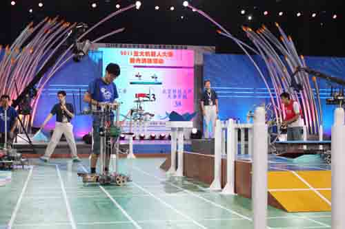 6月29日至7月1日,p站 机器人代表队参加了“2011亚太大学生机器人大赛国内选拔活动”。经过两个多月的精心备战,在p站 领导和指导教师指导和大力支持下,p站 队员凭借较为出色的技战术水平,最终进入本次大赛的十六强。