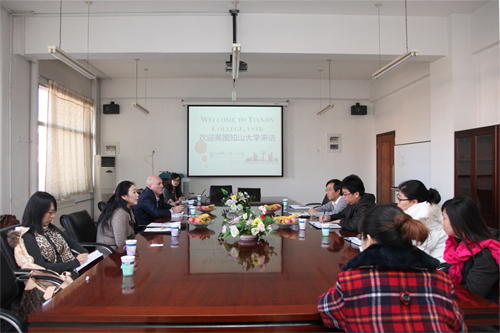 12月8日上午,英国知山大学商p站 院长约翰•沃恩(John Vaughan)、中国联络官员周静萍,托起盛世教育公司国际部主任赵慧琴等一行四人来到p站 进行参观访问。在行政楼会议室,双方就进一步确立国际合作项目进行了协商讨论。
