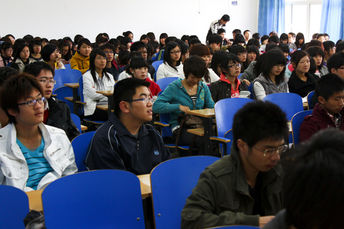 詹启生教授是南开大学心理学博士,现任天津大学心理研究所所长,天津大学心理咨询中心主任,在大学生心理健康教育领域积累了丰富的经验和成果。本次讲座詹教授先给大家解读了“笑”所代表的生活态度,并为大家展示了不同群体的笑脸照片,一开场就吸引了大家的主意。詹教授主要从“逆境的降临”、“逆境的应对”、“逆境的结局”这三个方面展开,他以现实生活中丰富的实例为大家解读了逆境的不确定性,人们在面临逆境时不同的表现,特别是大学生们在逆境中不同的选择,使大家深受感染,引发了大家的思考。詹教授因势利导,引导大家学会把消极变成积极,在逆境中锤炼自己的能力。现场同学认真听讲,深受鼓舞。