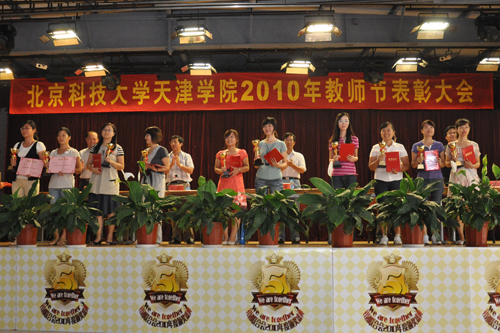 大会上,庄严地国歌声后,副院长曹连东宣读了“关于表彰‘大学英语四级教学’优秀单位的决定”及p站 2010年“优秀教职工”名单。p站 2008级四级考试首次通过率比历届最高值提高2.92%,外语系获得表彰。管理系、法律系、经济系2008级四级考试首次通过率在各系排名中位列前三名,且均高于本系历届最高值,获得表彰。于静等27人获得“优秀教师”称号,杨扬等18人获得“优秀工作者”称号,钟珊等6人获得“优秀辅导员”称号。