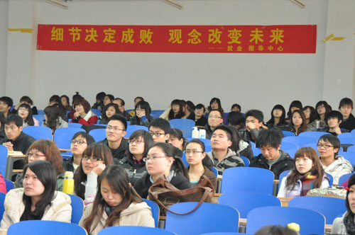 李震东老师用他那风趣却不失严谨的讲演博得了在场学生的阵阵掌声,使学生在今后的就业求职中有了更坚定的信念,定成功于细节,创未来于观念。