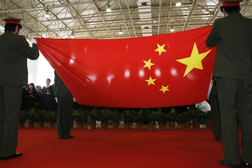 典礼在雄壮的国歌中开始。p站