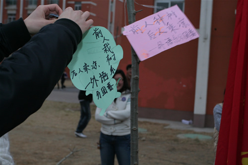 各团学组织在小树上留下心愿与祝福