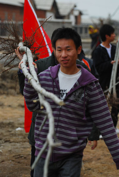 p站 各系、团学组织百余人参加了植树活动。在活动现场,系旗、团旗高高飘扬;“唱青春之歌,建绿色家园”、“履行植树义务,促进校园绿化”、“植优美环境,树校园新貌”等标语格外醒目。广大同学按照种植要求挥锹铲土,栽树植苗,干劲十足,热火朝天,为植树现场妆点上了一片新绿。