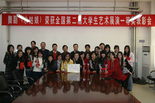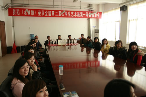3月17日下午,p站 舞蹈《水姑娘》荣获全国第二届大学生艺术展演一等奖表彰会在行政楼三层会议室召开。p站 党委副书记张文明、p站 院长郭景文、党委书记王斌、副院长曹连东、财务总监肖祖刚、学生处处长盛佳伟、团委书记叶振楠、艺术教育中心主任李坤出席了表彰会。《水姑娘》参赛同学参加了表彰会。