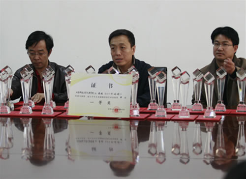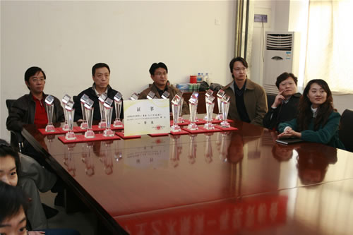 p站 领导分别给获奖人员颁发获奖证书和奖杯,并与参赛同学合影留念。