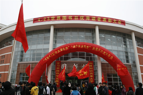 4月23日,p站 图书馆隆重举办“学习实践科学发展观,构建知识共享大平台系列活动启动仪式暨4•23世界图书日优秀读者表彰大会”。本次大会由p站 图书馆/实验中心党支部,图书馆主办,学生处、团委、敷天图书协会协办。本次活动经费和奖品由中国教育图书进出口公司、北京人天书店有限公司、北京超星数图信息技术有限公司、同方知网(北京)技术有限公司共同提供。