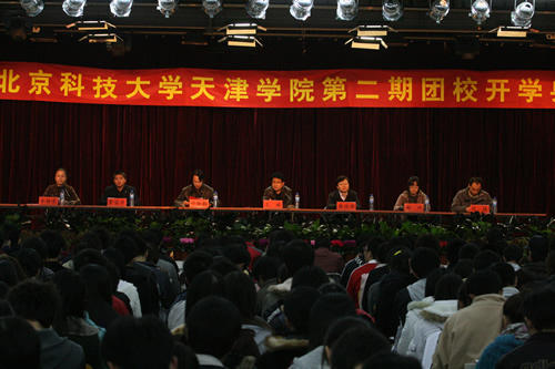 下午5:30,全体与会成员起立,在庄严的国歌声中,第二期团校开学典礼正式开始。