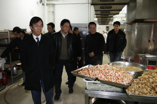 检查过程中,郭院长十分关心存在的一些问题,诸如电气设备线路凌乱、灭火器放置不够醒目、煤气罐与明火相距太近等。郭院长强调指出,对于存在的问题要做到问题隐患现场解决,违章设备当即停用。郭院长特别指出,食堂应设立安全员制度,在后厨应有专门人员负责安全问题。保卫处工作人员把问题一一记录下来,着手解决,对存在的问题现场发现、当即整改。