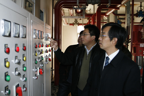 领导检查了室内通道、太平门等设施,郭院长还亲自试验了消火栓水龙中的水压情况。