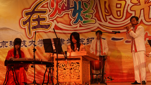 的张元铭老师献唱一首《老百姓》,优美洪亮的歌声赢得了师生们热烈的掌声。舞蹈串烧《舞彩缤纷》与民族群舞《火焰》展现了中国文明在与世界文明的交融与碰撞中绽放出的独特魅力。最后,晚会在合唱团的《在灿烂阳光下》中落下帷幕。