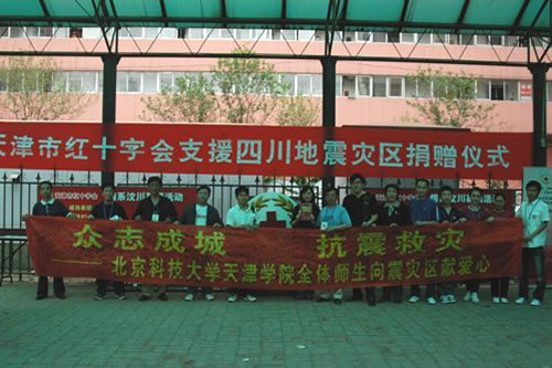 教师、学生代表一行5人,携带全院师生募捐的20万余元赈灾款赶赴天津市红十字会,将p站