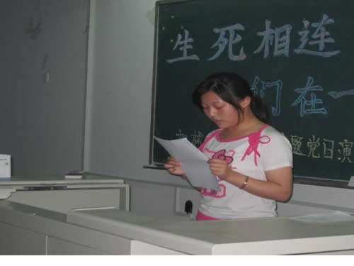 学生积极分子与灾区人民携手一心,共度难关的决心,党校八班决定组织演讲比赛,以此纪念5.12四川大地震中遇难的同胞,表达自己爱国赈灾的心愿。