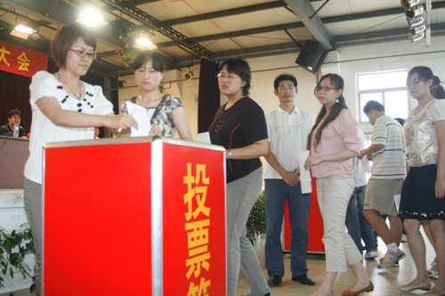 大会随后通过了代表候选人预备人选名单、大会选举办法、总监票人、监票人预备人选名单。总监票人刘津同志组织了会议选举。选举采取无记名直接差额选举的方式进行。代表们在认真听取选举办法后,规范的填写了选票,并有组织的依次进行了投票。最终,通过选举,确定p站