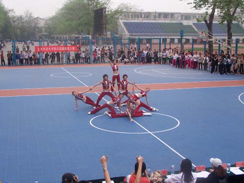 健美操队以《舞动青春,为奥运加油》为主题,以“我运动,我健康,我自信,我追求,努力拼搏超越梦想”为口号,用轻快的步调、明快的节奏,展现了她们积极自信、青春活力的精神面貌。