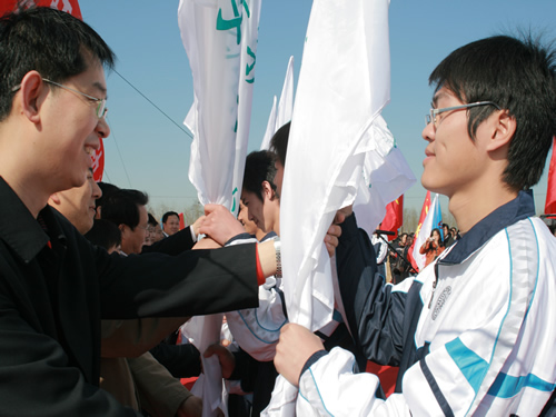 上午9:00,天津市团委副书记毛汉发宣布启动仪式正式开始,首先由农垦集团总公司团委书记汪占琪、天津团市委书记刘道刚为“里自沽青少年绿色家园”揭牌,而后由天津团市委书记刘道刚、宝坻区委副书记贾凤山为“宝坻区青少年生态教育基地”揭牌;随后与会领导为“‘保护母亲河’天津市青少年环保服务队”授旗,宝坻区青年志愿者宣读倡议书,倡议所有人应积极参与环保活动,为保护环境尽自己的一份力;最后市团委书记刘道刚致辞并宣布全市青少年环保节启动。仪式在一阵热烈的掌声中圆满结束。
