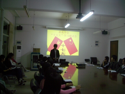 求是学会通过研讨会的形式把学习、领悟到的“十七大”精神宣传出去,回顾历史,展望未来。此次活动是在党的十七大的背景下开展的学习宣传工作,在了解国家思想新动态的基础上营造了良好的学习宣传贯彻氛围。