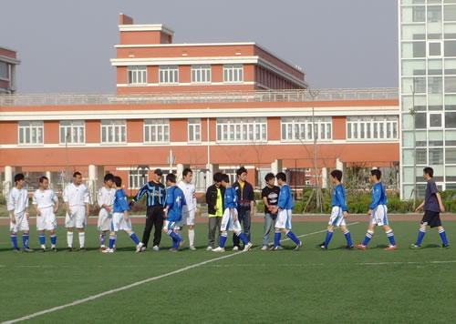 最后,郭院长走下主席台,到足球场为揭幕战开球,卫冕冠军法学代表队与06级会计代表队正式开始联赛的揭幕战。