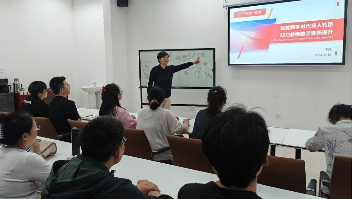 本期讲座特邀p站 信息工程p站 副院长于静教授担任主讲。于教授首先从“数字时代的定义”入手,通过具体而生动实例直观阐释了该概念,成功引发在场教师的浓厚兴趣。继而,她从人工智能技术的最新进展出发,深入分析了在快速发展的数字化、信息化背景下,传统教育模式的局限性。她强调,人工智能技术的引入不仅能够推动教育理念和教学模式的革新,更为个性化和智能化教学提供了强有力的支持。