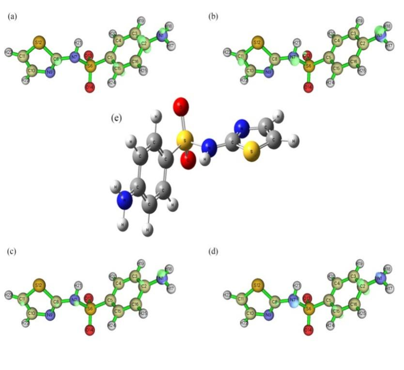 Figure 5 Fukui functions (a) , (b), (c) , (d) dual descriptor (DD),