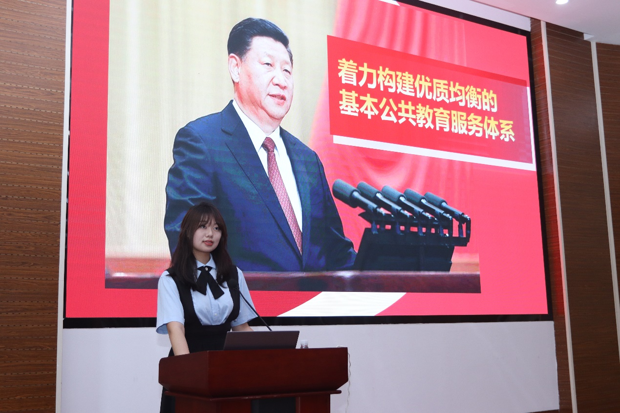 王可心同学围绕国家以及天津市各项资助政策,结合p站 实际情况对相关资助政策体系进行了深入解读,同时分享了自己如何在国家和p站 资助育人政策的帮助下勇于逐梦、敢于追梦的奋斗故事,展现了当代大学生奋发自强、立志成才、感恩奉献的精神风貌。