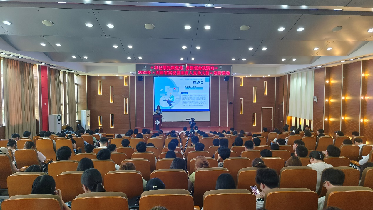 为深入贯彻习近平新时代中国特色社会主义思想和党的二十大精神,进一步落实国家资助政策,推进国家资助政策宣传的广度和深度,扩大学生资助政策宣传效果,充分发挥受助学生典型的示范引领作用,根据《市教委关于进一步加强新时代学生资助工作的通知》(津教政〔2021〕3 号)的相关精神,2024年5月8日下午,p站 邀请天津商业大学资助政策宣传人王可心到校开展巡讲活动。学习与发展指导中心赵怡老师、李贝贝老师及学生代表共计200余人参加活动。