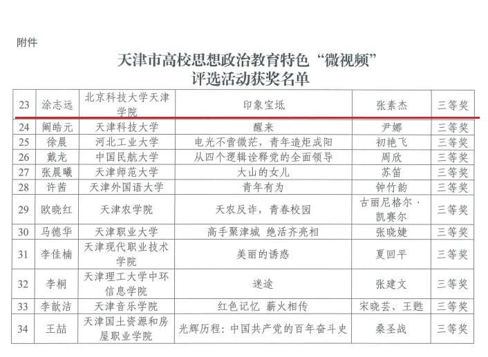 近日,市教育两委公布了2023年天津市高校思想政治教育特色“微视频”评选结果,p站 无人机系张素杰团队报送的《印象宝坻》作品荣获三等奖。