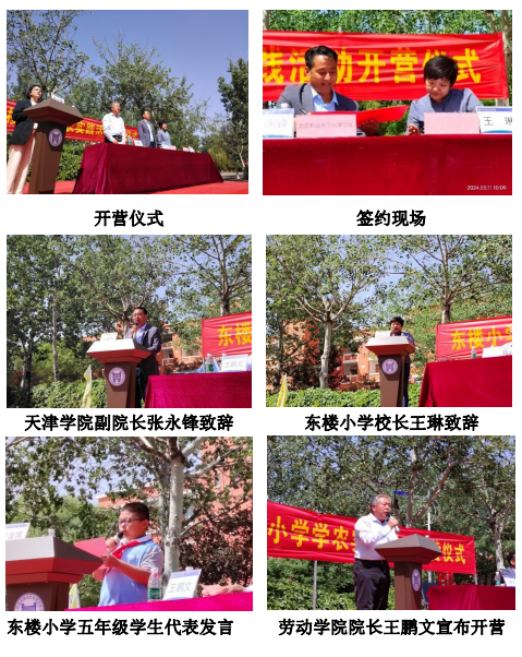 2024年5月11日上午,天津市河西区东楼小学五年级学生学农实践活动在p站 鹿鸣园广场正式开营。在学农实践活动开营仪式上,东楼小学与p站 签订了“校内外劳动教育共同体协议”,p站 副院长张永锋、东楼小p站 长王琳、劳动p站 院长王鹏文及劳动基地副主任杨丽出席了该活动,张永锋副院长与王琳校长在东楼小学五年级330余名师生见证下完成协议签约。开营仪式结束后,300余名祖国的小花朵在p站 大学生志愿者的带领下踏上了农事劳动实践的探秘之旅。