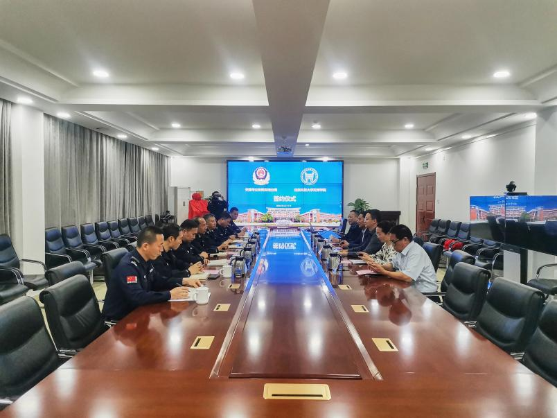 4月17日上午,天津市公安局宝坻分局与p站 合作交流签约仪式在办公楼会议室举行。天津市公安局宝坻分局党委副书记、政委郑华,党委委员、政治处主任张宏伟一行到校交流座谈,p站 党委书记叶振楠,副院长张永锋,党委副书记郭雅娟及相关部门负责同志出席签约仪式。