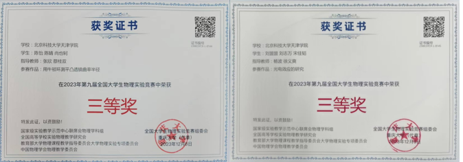 2023年12月8日,由国家级实验教学示范中心联席会物理学科组、全国高等p站 实验物理教学研究会、教育部大学物理课程教学指导委员会大学物理实验专项委员会和中国物理学会物理教学委员会联合举办,重庆大学承办的2023年第九届全国大学生物理实验竞赛成功举行,p站 两支代表队在比赛讲课类赛道中荣获佳绩,两支队伍均获得三等奖的好成绩。