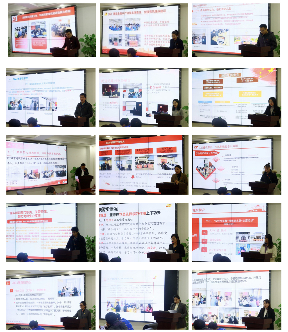 党委副书记赵志南、栗时锋对各党总支书记和党支部书记述职情况逐一进行了点评。党委副书记赵志南对各教工党支部一年的工作给予了充分肯定,并根据部分党支部特色不足、理论学习情况不够深入等问题,提出要进一步加强师生党员的理论学习教育,以习近平新时代中国特色社会主义思想为指导,全面贯彻落实党的二十大精神,深入体会党组织文件的内涵,并与支部特色结合起来,更好地运用到实践中去,更好地惠及广大师生。党委副书记栗时锋对各学生党支部逐一点评,并强调各基层党组织一是要加强各级党组织的组织建设,积极响应上级党组织的号召,贯彻落实党的政策;二是要发挥党员先锋模范带头作用。作为党员干部,要始终牢记作为一名党员的光荣使命,为广大群众做好榜样; 三是推动党建与业务工作相融合。创新工作方式,创造性地开展党员特色教育活动,集群智群力,推进党建工作落到实处。