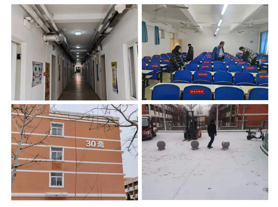 基建产业处、后勤处和资产管理中心等相关部门对校园内的建筑、设施设备进行全面检查,对存在损坏和隐患的设施设备进行维修养护,确保设施设备安全可靠。保卫处和基建处联合对校园道路进行区域划分,投放石球,确保新学期师生出行安全。