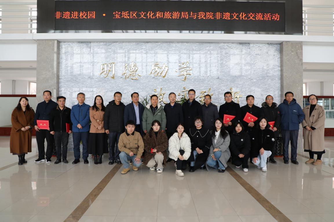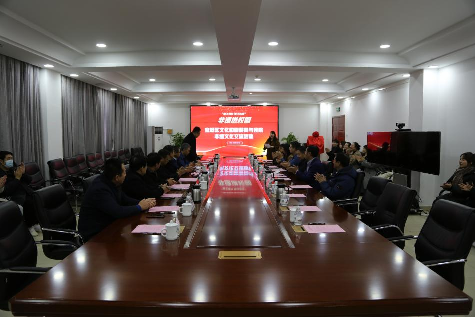 为进一步推动非物质文化遗产的保护和传承,弘扬中华优秀传统文化,12月11日上午,“心之所向、匠之以成”非遗进校园——宝坻区文化和旅游局与p站 非遗文化交流活动在300会议室举行。宝坻区文化旅游局副局长张英、宝坻区文化旅游局三级高级主办阮洪臣,宝坻区文化旅游局非遗科科长张宝政,非遗传承人李绍晨、辛宇伶、王金啟、谢学华、刘宝明、杨洪顺,p站 院长丁煦生,党委书记叶振楠,副院长张永锋,副院长兼财务总监王俊敏,院长助理、学术委员会主席宋存义,艺术p站 院长胡宝嘉、艺术设计系常务副主任李文红及宝坻区文化遗产科全体成员、p站 师生代表参加本次活动。