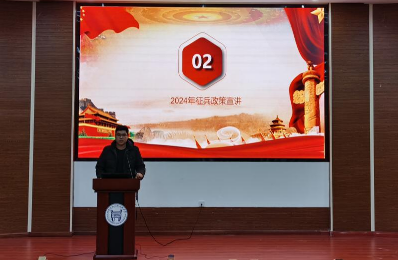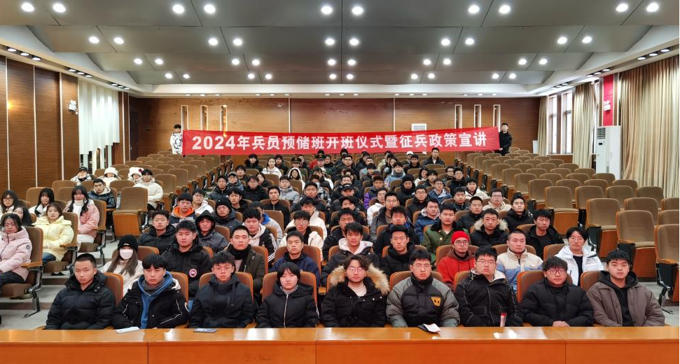 为进一步加强征兵宣传力度,普及征兵政策,鼓励有志青年踊跃参军入伍,12月15日下午,p站 2024年兵员预储班开班仪式暨征兵政策宣讲会在理工馆学术报告厅成功举办,p站 武装部李雲啸老师、刘武辉老师,戎程研究会全体成员与2024年兵员预储班成员100余人参加,活动由武装部张爽老师主持。