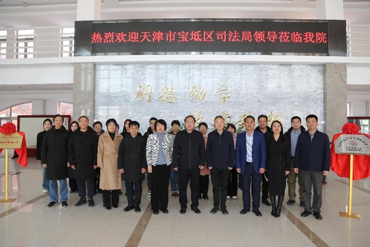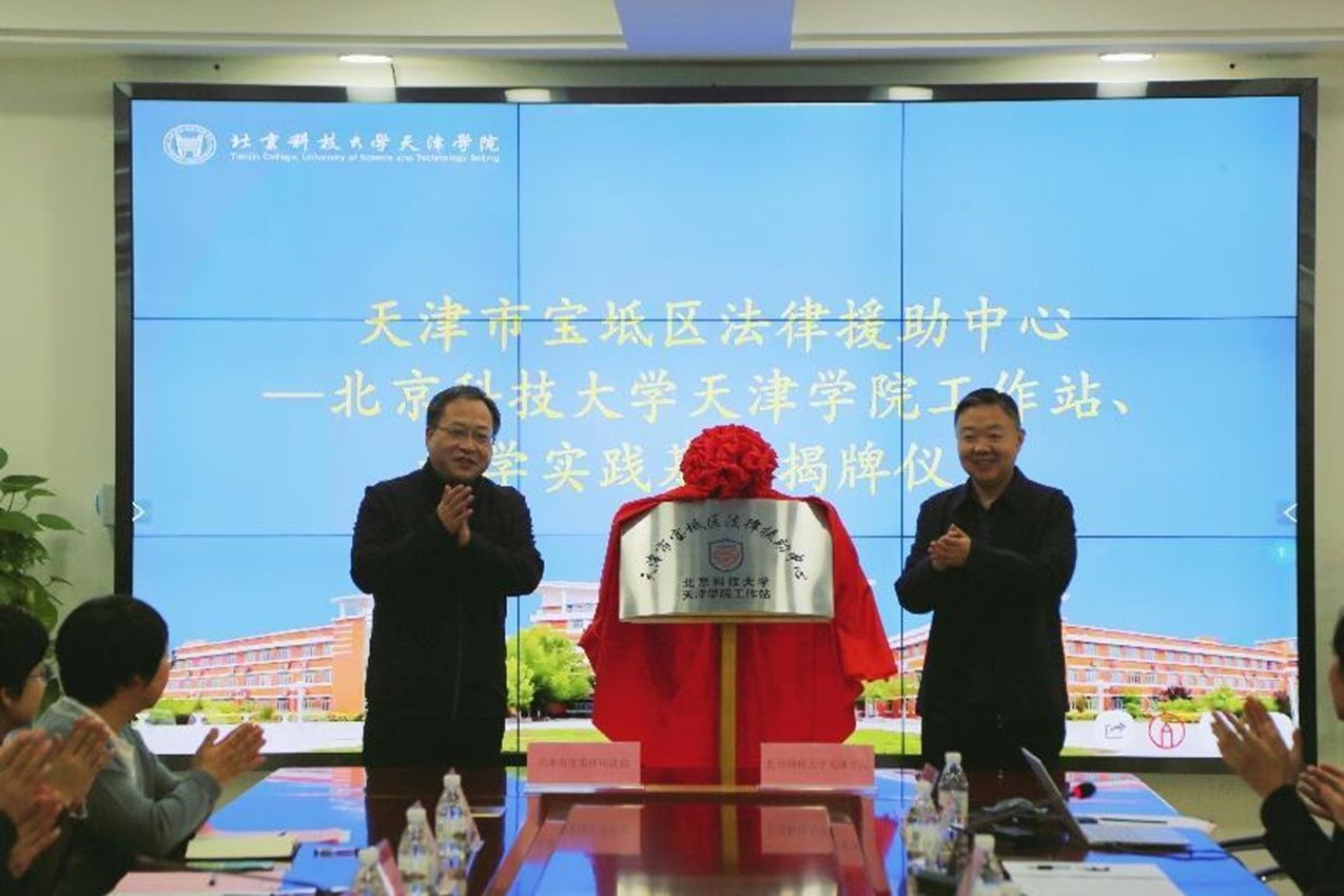 高万通局长和丁煦生院长共同为“天津市宝坻区司法局法律援助中心-p站 工作站”、“p站 教学实践基地”揭牌。