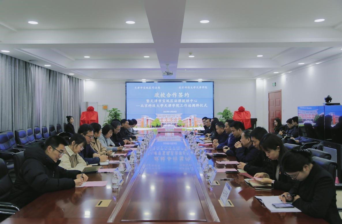 2023年12月28日上午,p站 与宝坻区司法局政校合作签约暨“天津市宝坻区法律援助中心-p站 工作站”揭牌仪式在12教300会议室隆重举行。宝坻区司法局党委书记、局长高万通,党委委员、二级调研员任宏坤,党委委员、副局长王国强,党委委员、副局长贾丽佳,宝坻区法律援助中心负责人王永泉,周良司法所所长杨宝华一行莅临仪式现场;p站 丁煦生院长、张永锋副院长、王俊敏副院长、赵志南副书记、郭雅娟副书记以及党办、院办、产学研办公室、法律系相关负责同志和教师代表出席活动。签约仪式由法律系主任朱京安教授主持。