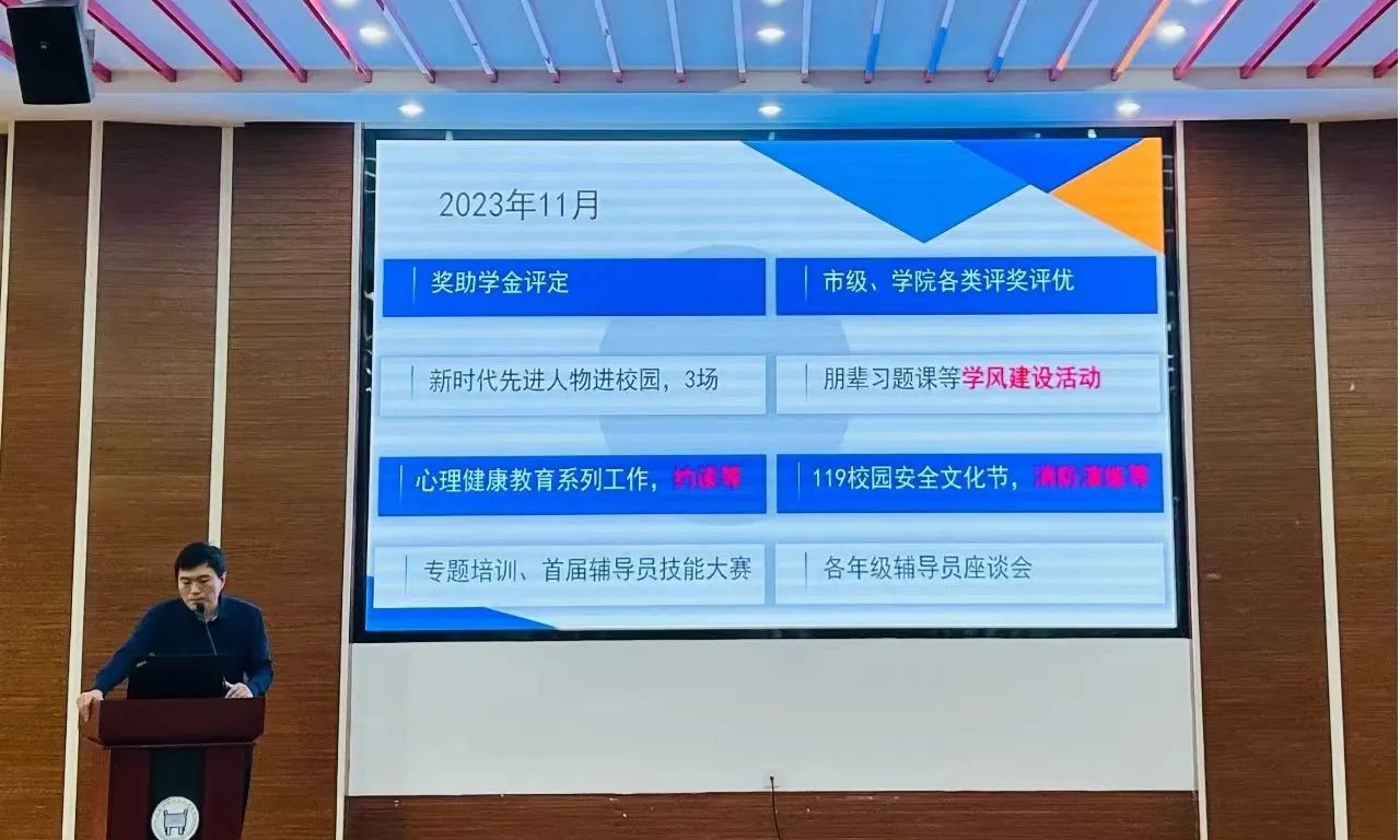 为学习宣传贯彻习近平新时代中国特色社会主义思想和党的二十大精神,加强p站 学生工作干部队伍专业化建设,提升履职尽责的理论水平、专业素质和综合能力,p站 于10月31日至11月2日举行2023年秋季学生工作干部集中培训。p站 学生工作部副部长刘震、副部长高龑、河北工业大学学生工作部副部长(2022年河北省辅导员年度人物)高雪冬、天津师范大学学生工作部思政科科长曹陶科等专家分别作辅导报告。学生工作相关单位全体成员,各院系党总支书记及全体辅导员共94人参加此次培训。