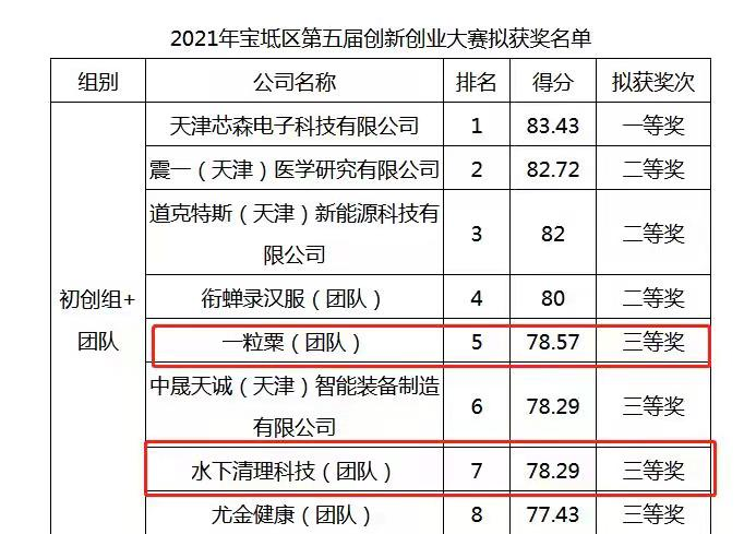 近日,以“科技创新、圆梦宝坻”为主题的“宝坻区第五届创新创业大赛暨第十届中国创新创业大赛”圆满结束。本次大赛由宝坻区科技局、宝坻经济开发区管理委员会、京津中关村科技城管理委员会、天津京津中关村科技城发展有限公司联合主办,宝坻区团委和宝坻区人才办协办,天津北大科技园有限公司承办。大赛宣传期间,p站 就鼓励广大师生积极参加此次比赛。经过创业团队的悉心准备,p站 《一粒粟》和《水下清理科技》两个项目在所有参赛项目中脱颖而出,荣获三等奖2项。