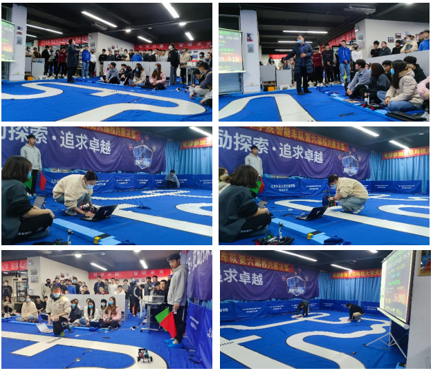 2021年11月27日16时,p站 第六届智能车校内赛总决赛在p站 众创空间二楼智能车创新实践平台举办。本届校内赛总决赛分为光电四轮组、摄像头直立组、电磁三轮组和无线节能组四个参赛组别,共计32支参赛队杀进总决赛,参与人数达300余人。智能车队指导老师张素杰、焦万铭、柯瑜及第十五届、十六届智能车队国赛领队及队员到场观摩指导。