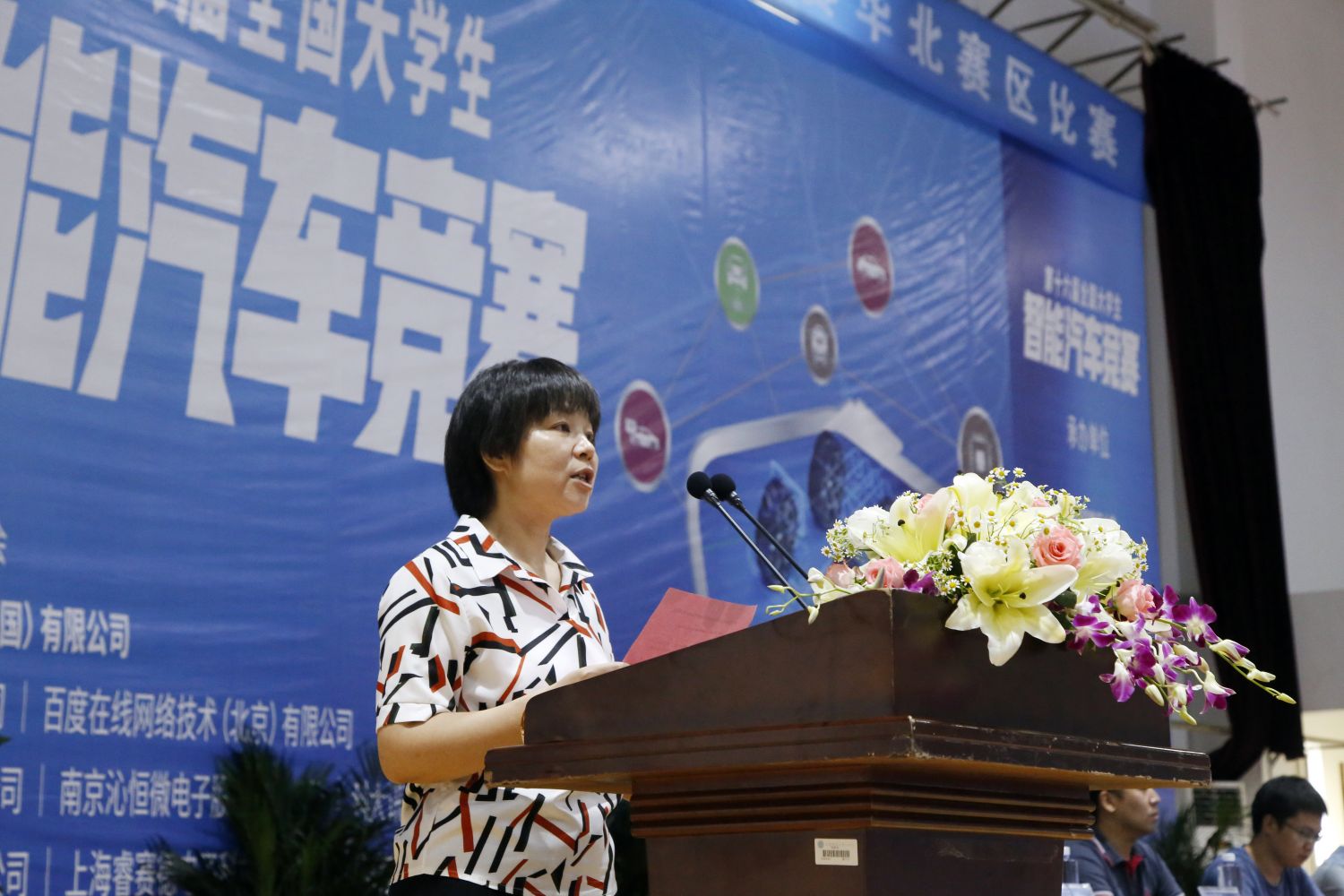 竞赛组委会秘书处成员任艳频宣布第十六届全国大学生智能汽车竞赛华北赛区奖项设置情况,她宣布,本次竞赛将按照“分赛区普及、全国赛提高”的原则,在分赛区、省赛区每个组别分别按照相同的比例设置奖项,她公布了华北赛区一、二等奖比例以及三等奖和优秀奖的评定选择,并公布了各组别进入分区决赛的队伍数。