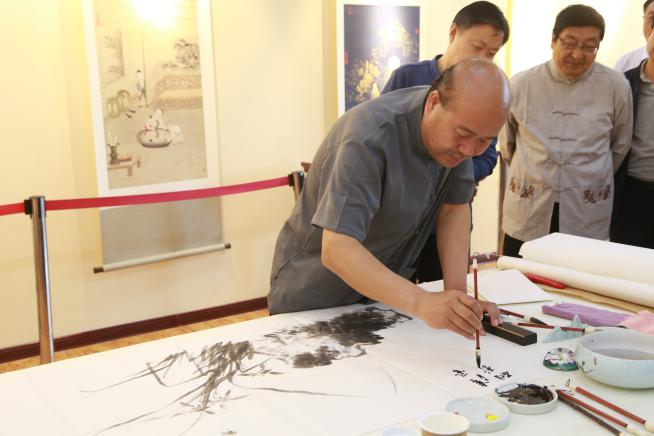 天津市美协副主席孟庆占先生移步书画体验区,将活动带入高潮。孟主席泼墨挥毫为p站 留下了珍贵的墨宝:《清风雅韵》。作画过程中,孟主席向大家讲述了这幅画的构图要素及其蕴含的深刻含义,赢得在场师生的阵阵掌声。体验活动最终在文化展示和艺术交流的氛围中落下了帷幕。