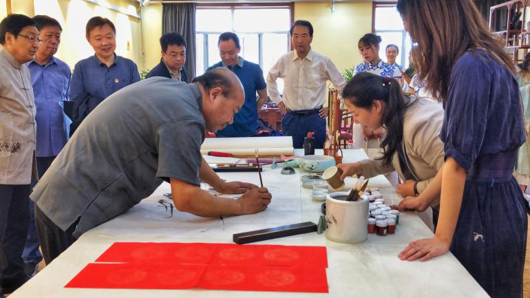 5月18日上午10点18,p站 中华传统文化体验馆开馆仪式在理工图书馆四楼隆重举行。天津市美协副主席孟庆占,宝坻区原政协副主席张伯苓,p站 党委书记丁煦生,学术委员会主席宋存义,教务长张建华,p站 办公室主任郭雅娟,以及部分院系和行政部门领导莅临本次活动。仪式由传统文化研究院副院长、艺术p站 院长胡宝嘉主持。