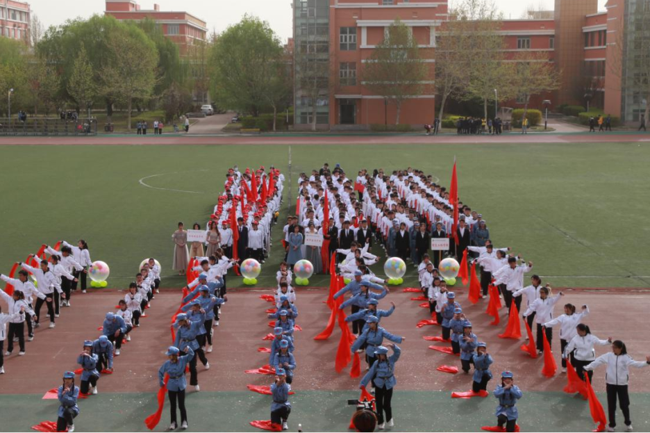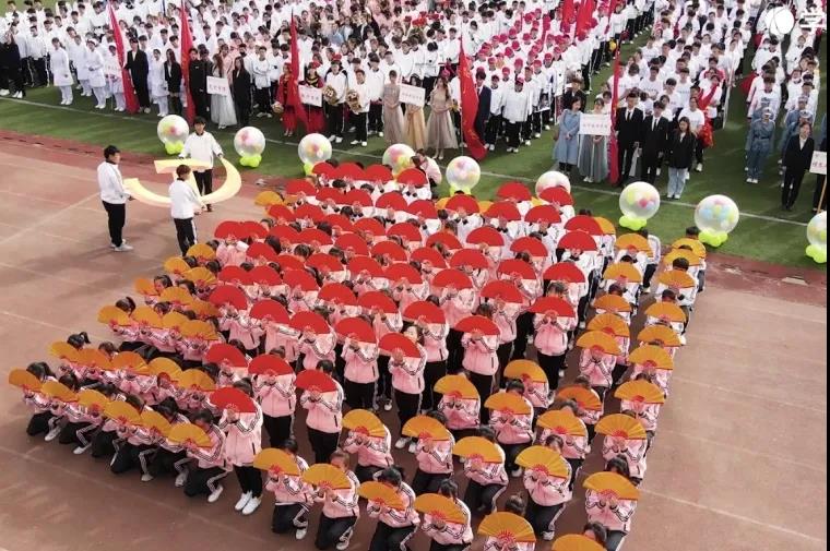 外国语p站 方阵的啦啦操表演整齐划一、充满激情,红色的党徽映在方阵中央,让人心生敬畏。