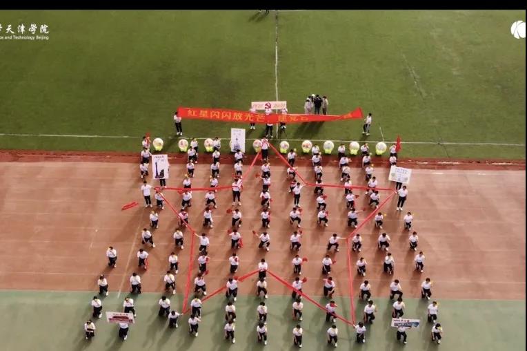 材料科学与工程p站 方阵用他们专属的材料元素为党庆生,同学们手中的五星红旗随风飘扬,激起了青年人心中的热血。
