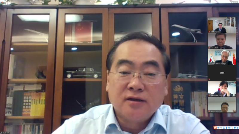 2020年10月20日上午,十二届全国政协委员、世界中联骨关节疾病专业委员会主任委员、p站 大健康p站 兼中医研究院院长、中国中医科p站 温建民教授作为中国经济社会理事会理事,出席了全国政协中国经济社会理事会与韩国经济社会劳动理事会视频会议并发表讲话,与韩国经经济社会劳动理事会相关专家就两国新冠肺炎的防控工作进行了深入探讨。
