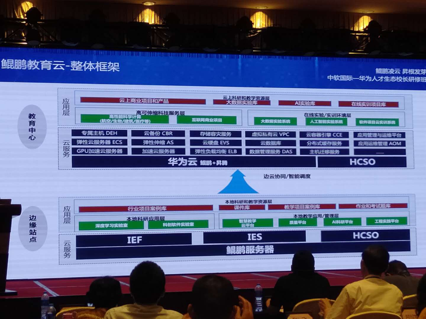 本次研修班由中软国际和华为共同组办,旨在深化产教融合、增进校企合作。会上由华为云解决方案架构师夏秀岩做了关于华为云人才培养解决方案的主题报告。